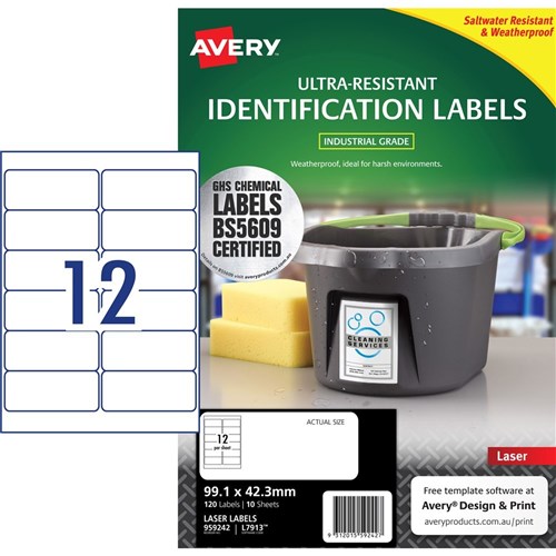 Avery Identification Laser Ultra Resistant White L7913 99.1x42.3mm 12UP 120 Labels