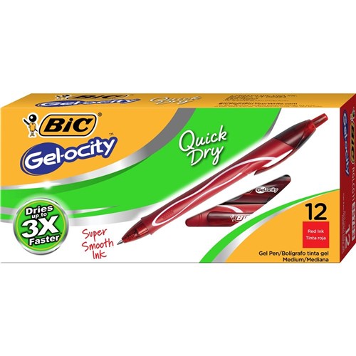 Bic Gelocity Gel Pen Retractable Medium 0.7mm Red Pack of 12
