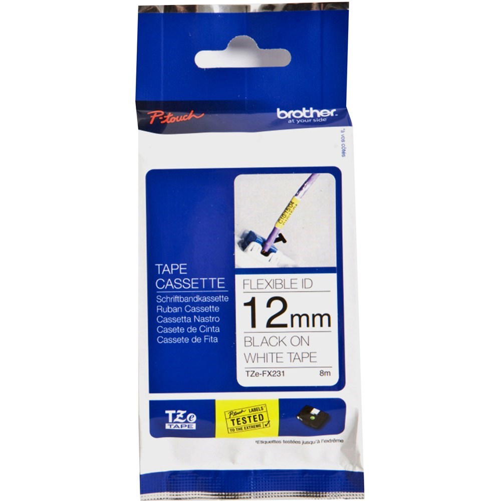 Brother TZE-FX231 P-Touch Tape 12mmx8m Black on White Flexible ID Labelling
