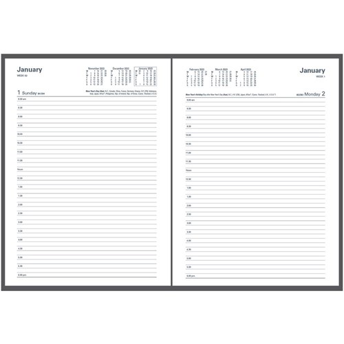 • Smartly bound in durable covers with a ribbon marker and contains pages of useful information.