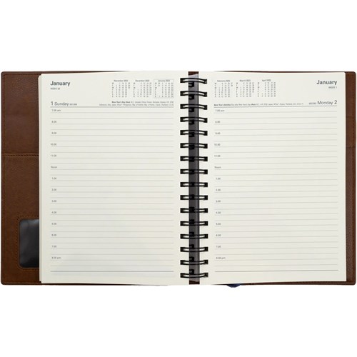 • Ideal for those 'on the move' with its double wiro binding and heavily grained metallic and matt PU cover.