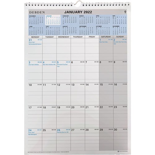 Debden Calendar Wall Planner 305 x 432mm Month To View Wiro Top