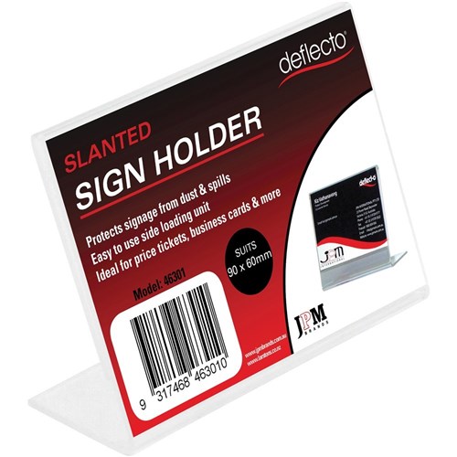 • Display your business cards or product tickets prominently using this clear slanted card holder