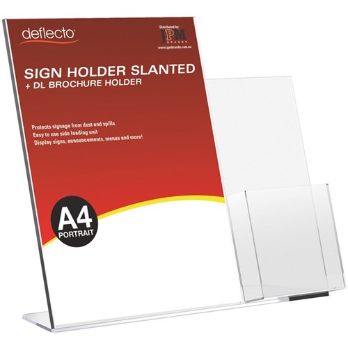 Deflecto Sign Holder Slanted A4 Sign Holder With Side Mount DL Brochure Holder Portrait
