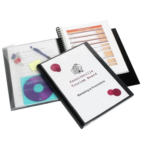 • Rigid, concealed refillable spiral spine located on the inside of the display book for a more professional presentation.