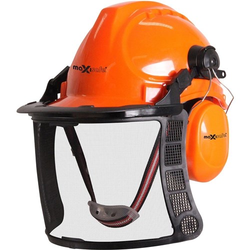 Maxisafe Forestry Kit With Helmet Metal Mesh Visor And Earmuffs Orange And Black