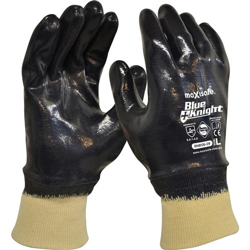 Maxisafe Blue Knight Nitrile Fully Dipped Gloves With Knit Wrist Large Black