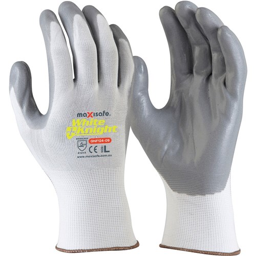 Maxisafe White Knight Nitrile Palm Gloves White And Grey Extra Small