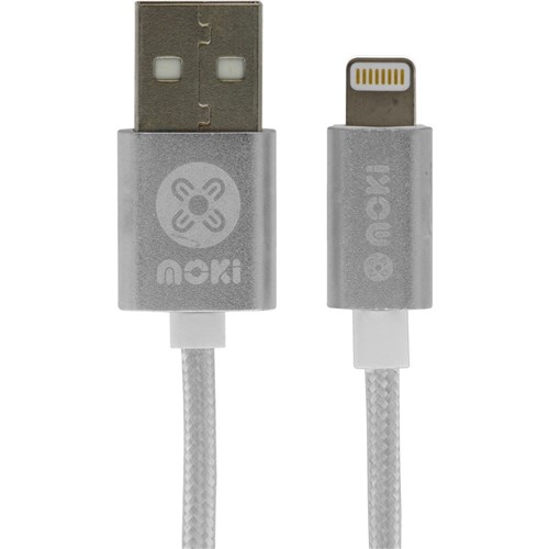Moki King Size USB To Lightning SynCharge Cable 3 Metre Braided Silver