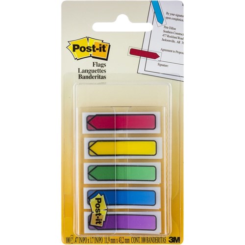 Post-It 684-ARR1 Arrow Flags 12x45mm Blue Green Purple Red Yellow Pack of 100