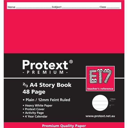 Protext Premium Story Book 2/3 A4 48 Page Plain/Ruled 12mm Red Margin E17