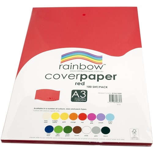 Rainbow Cover Paper A3 125gsm Red 100 Sheets