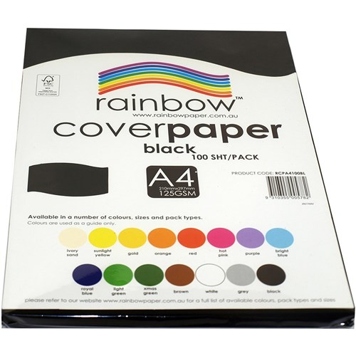 Rainbow Cover Paper A4 125gsm Black 100 Sheets