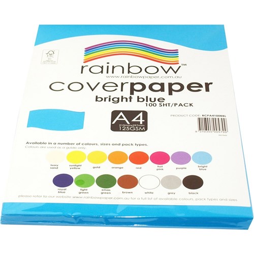 Rainbow Cover Paper A4 125gsm Bright Blue 100 Sheets