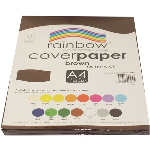 Rainbow Cover Paper A4 125gsm Brown 100 Sheets