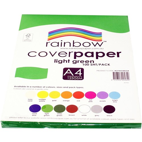 Rainbow Cover Paper A4 125gsm Light Green 100 Sheets