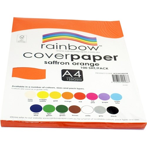 Rainbow Cover Paper A4 125gsm Saffron Orange 100 Sheets