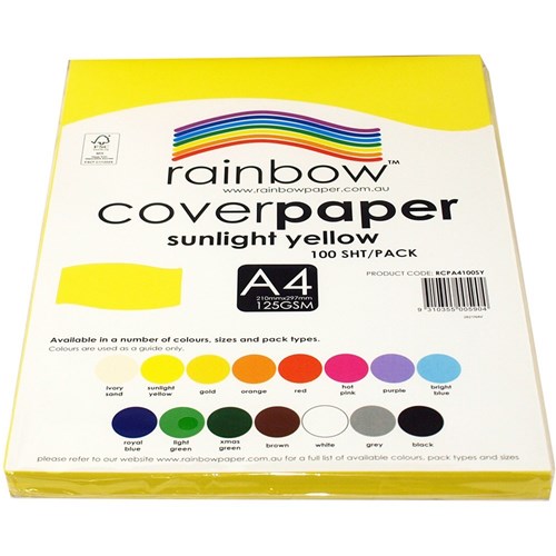 Rainbow Cover Paper A4 125gsm Sunlight Yellow 100 Sheets