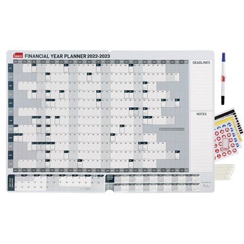 Sasco Financial Year Wall Planner 870 X 610mm Year To View Grey