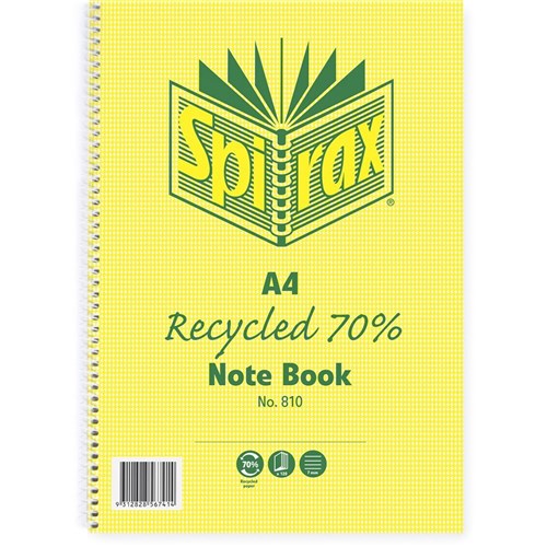 Spirax 810 Recycled 100% Notebook A4 Ruled 120 Pages Side Opening