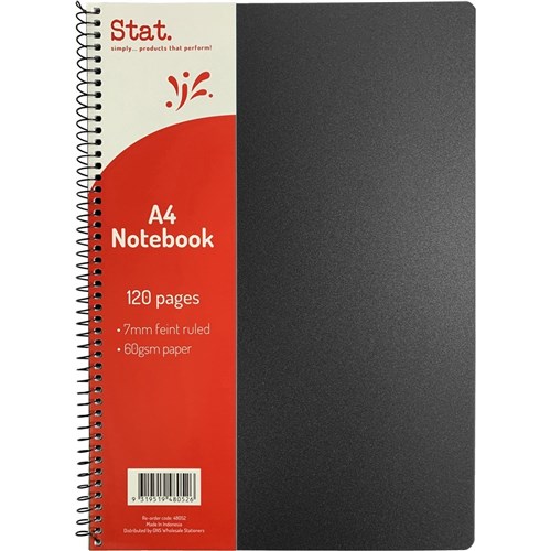 Stat Notebook A4 7mm Ruled 60gsm 120 Pages Poly Cover Black