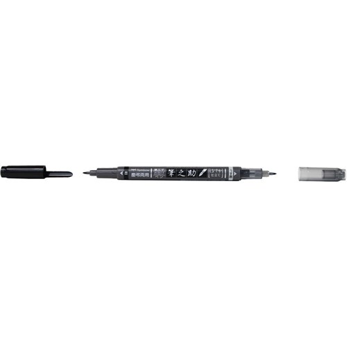 Tombow Fudenosuke Pen Twin Tip Black And Grey
