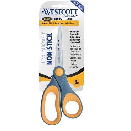 Westcott Titanium Scissors 203mm Bonded Straight Handle Non-Stick Grey and Yellow