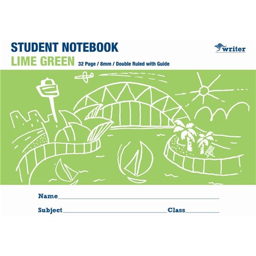 Writer Student Notebook 175 x 245mm 8mm Double Ruled 32 Pages Lime Green