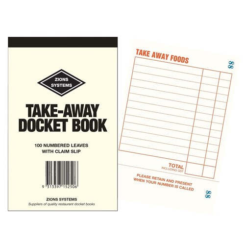 Zions TA Docket Book Restaurant Take Away 150x95mm