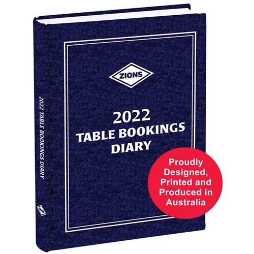 • Zions Table Bookings Diary is proudly designed, printed and produced in Australia from sustainable sources.